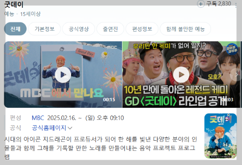 5. 지드래곤 고정 예능 '굿데이'