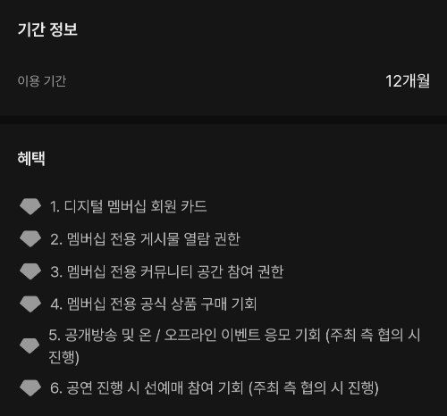 - 멤버십 전용 공식 상품 구매 기회